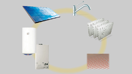 Riscalda, con priorità, un boiler sanitario per la produzione e l’accumulo di acqua calda sanitaria e un impianto termico con radiatori.