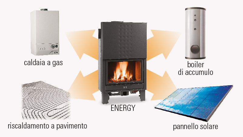 ENERGY 2.0 è il termocamino-caldaia ideale per realizzare il sistema di riscaldamento su misura per le tue esigenze.